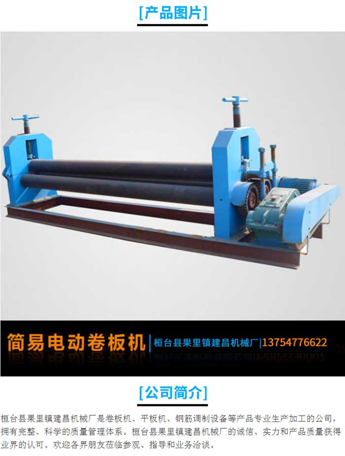 桓臺縣果里鎮建昌機械廠是卷板機、平板機、鋼筋調制設備等產品專業生產加工的公司,擁有完整、科學的質量管理體系。桓臺縣果里鎮建昌機械廠的誠信、實力和產品質量獲得業界的認可。歡迎各界朋友蒞臨參觀、指導和業務洽談。 聯系電話:13754776622